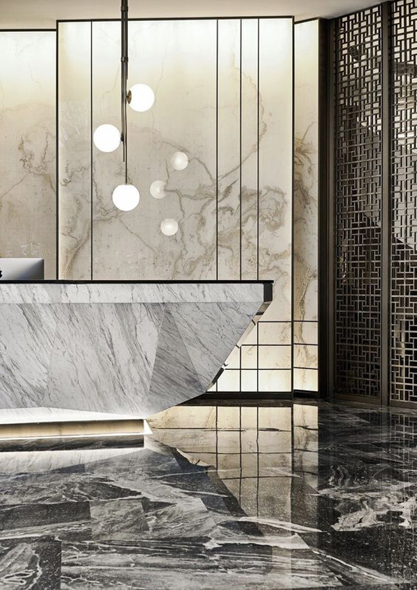 中國是一個講究意境的國家,無論是傳統(tǒng)的山水畫還是園林造園藝術(shù),都講究注重空間的營造。中式風(fēng)格酒店在大堂設(shè)計(jì)中往往運(yùn)用中國古典園林常用的多種造景手法加以渲染,如借景,框景,對景等,園林手法在室內(nèi)空間的運(yùn)用使室內(nèi)空間顯的更具有層次感,更加含蓄自然。